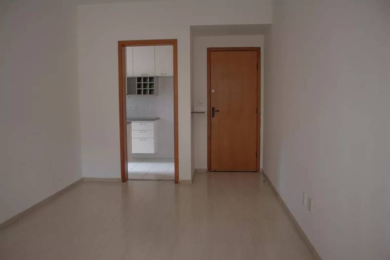 1 Sala ampla para dois ambientes, com piso em vinílico amadeirado e varanda